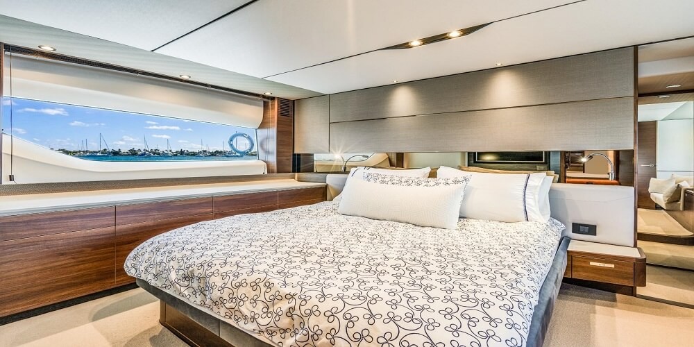 There’s an undeniable presence about the 65' Princess, with its slender streamlined form that exudes a predatory air. A lightweight deep-V hull delivers on this promise with breathtaking agility of up to 43 MPH. When at anchor, peacefulness descends onto the Princess S65's generous well-appointed deck areas, whilst its hydraulic bathing platform and 3.3m tender garage become the perfect base for watersports. The 65' Princess's spacious interior accommodates up to eight guests across four state rooms, three of which are en suite.